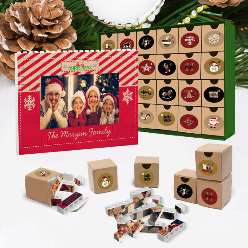 Cadeaux De Noël Compte À Rebours Boîte Aveugle Bloc De Construction Personnalisé Puzzle Calendrier De L'avent De Noël Trio Horizontal Personnalisé Photo Brique Joyeux Noël