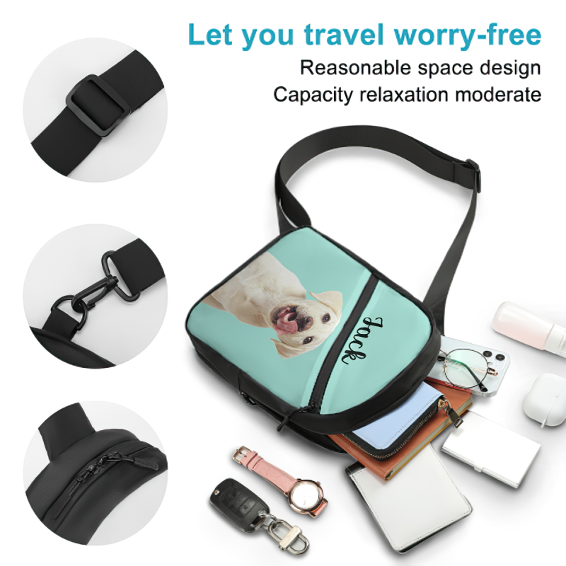Sac poitrine personnalisé avec photo. Doté d'une bandoulière réglable, il peut être utilisé comme sac poitrine, sac à bandoulière ou sac à bandoulière selon vos besoins.