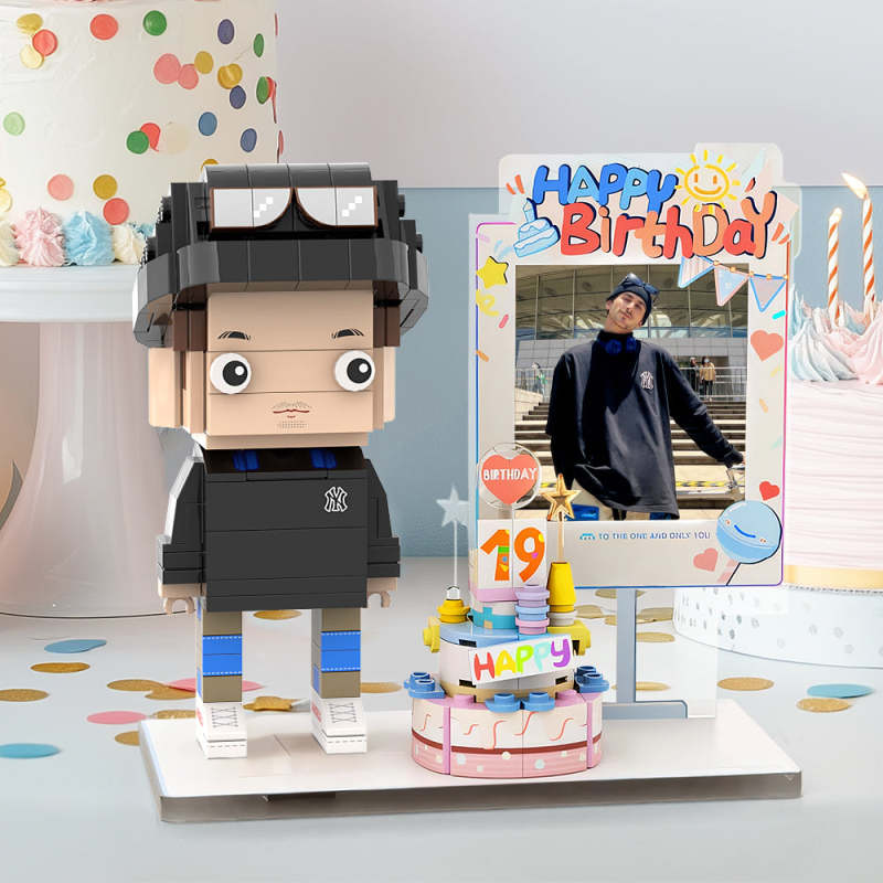 Figurines En Brique Sur Le Thème De L'anniversaire Du Corps Entier, Jouet Universel En Plastique À Emboîtement, Personnalisable, 1 Personne, Petit Bloc De Particules, Jouet Cadeau Pour Garçon D'anniversaire