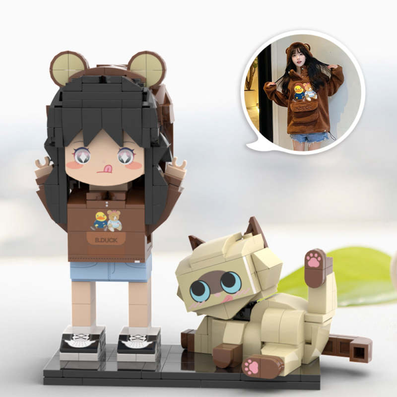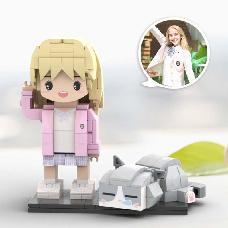 Figurines En Brique Mignonnes Personnalisées Avec Chat, Corps Complet, Figurines En Brique Mignonnes Personnalisables, Petit Bloc De Particules, Jouet