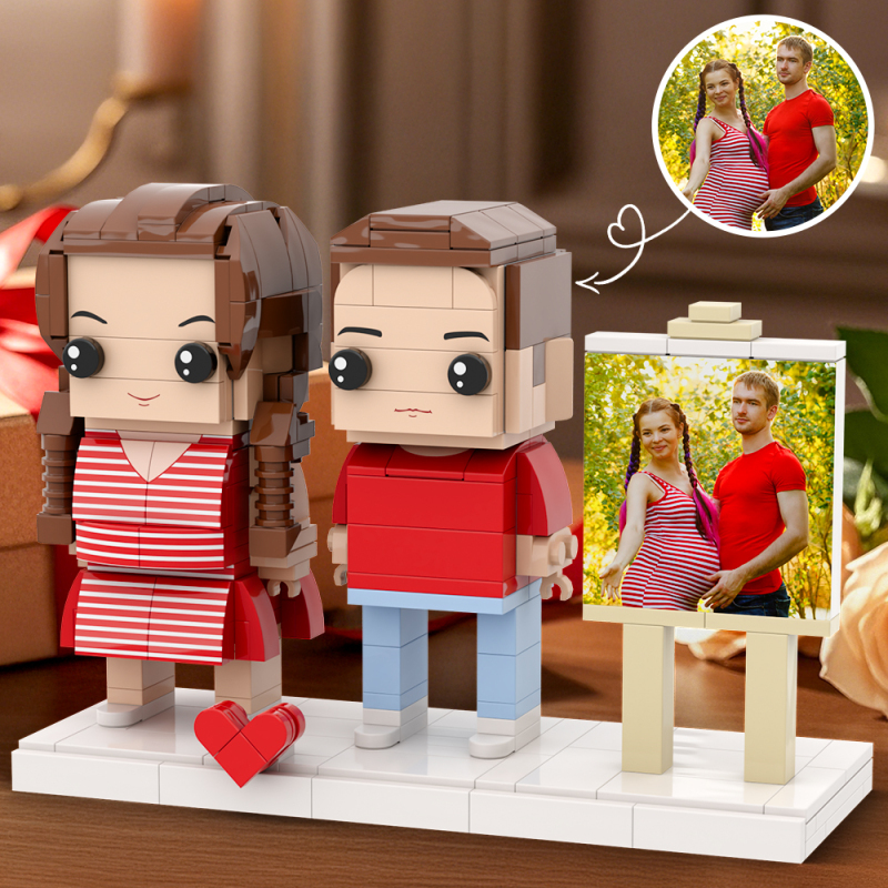 Cadeau De Grossesse, Cadre Photo Personnalisable Pour 2 Personnes, Figurines En Briques Personnalisées