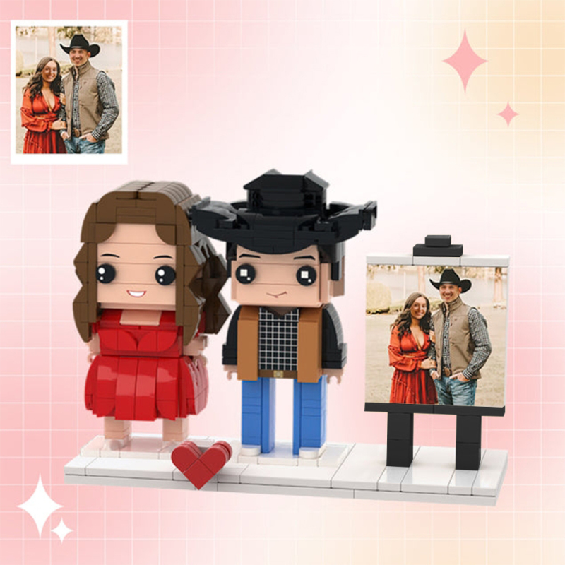 Valentine's Day Gift Customizable Fully Body 2 People Custom Brick Figures Denim Suit Brick Me Figures With Photo